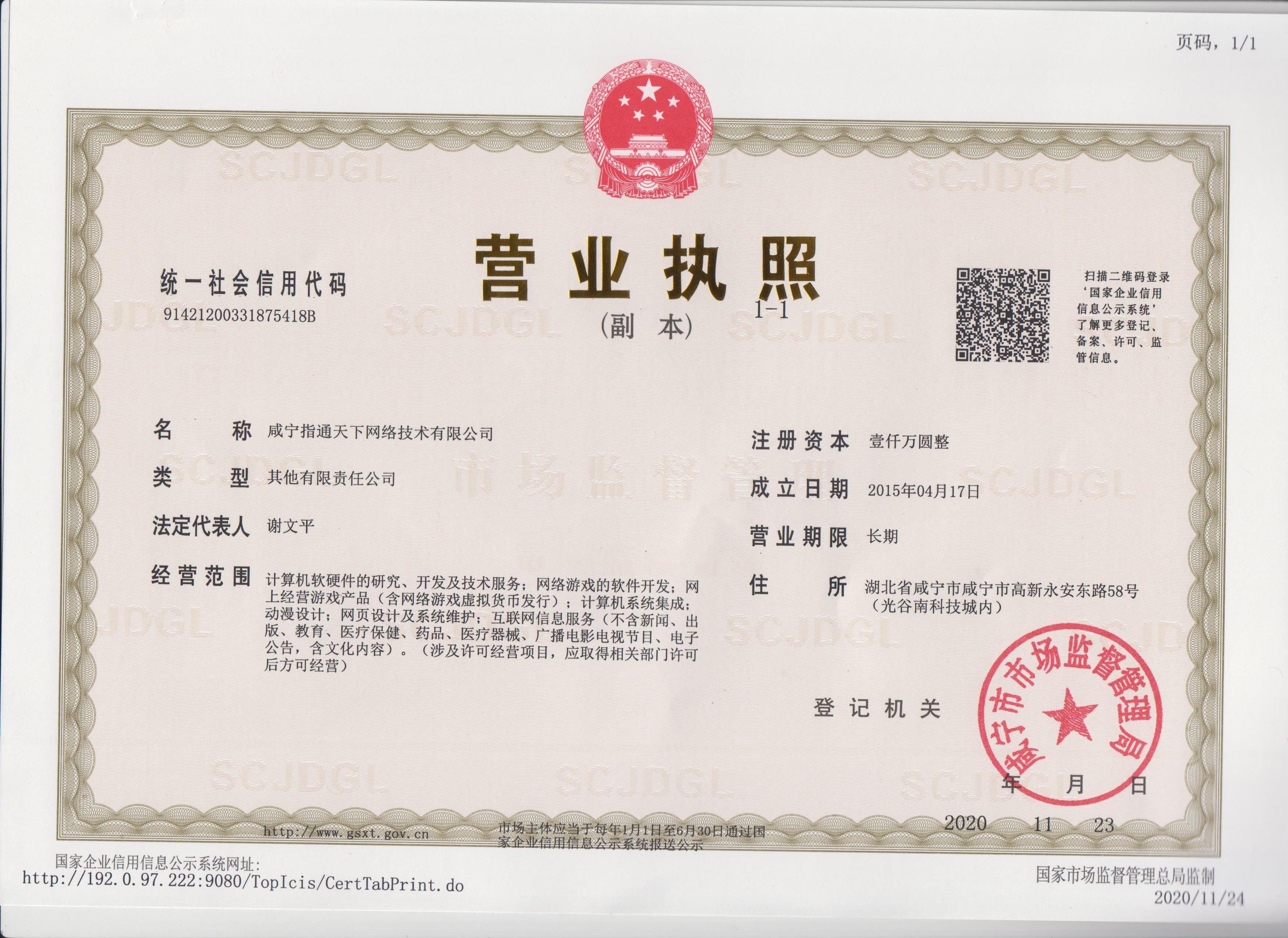 咸宁指通天下网络技术有限公司《企业营业执照》